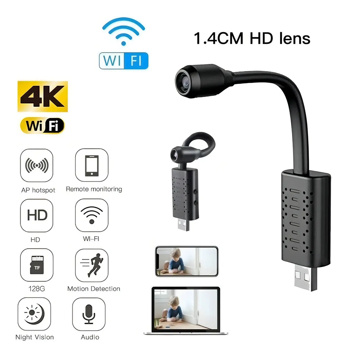 La herramienta perfecta para mantener tu seguridad y tranquilidad en cualquier espacio. Esta mini cámara espía con conexión USB graba audio y video en alta definición, con un ángulo de visión de hasta 100°. Su tamaño compacto y diseño discreto permiten usarla en el hogar, la oficina o incluso como monitor para bebés.